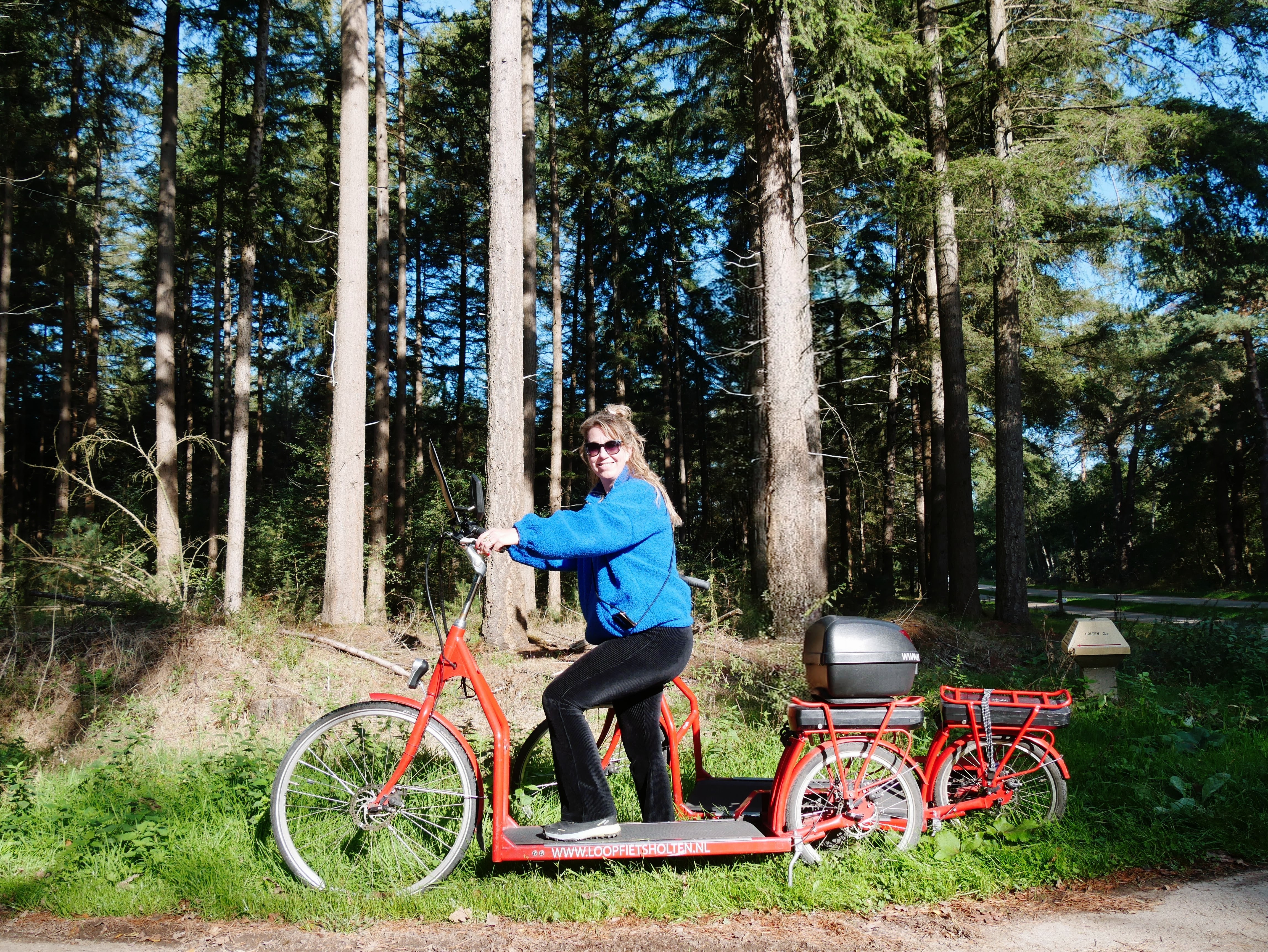 Een wat?! Ik moest even wennen aan het idee, maar zag ook de lol ervan in. We zijn altijd in voor iets nieuws en iets geks en dus gingen we op de loopfiets. Na een proefrondje op het plein gingen we wat twijfelend de weg op. Gewapend met een ouderwetse route-omschrijving (kunnen wij nog navigeren zonder telefoon haha?) 'loopfietsen' we de natuur in. We komen al zingend over het zingfietspad en slingeren over de fietspaden door de bossen. Gaandeweg onze route worden we vertrouwder met de loopfiets en gaan we harder en harder. Tjonge, deze dingen kunnen behoorlijk vaart maak! Leuk! We stoppen hier en daar voor een foto en een slokje water. We leggen moeiteloos een grote afstand af en zien daardoor al veel van de prachtige natuur van Rijssen en Holten. Een originele manier om de regio te verkennen!