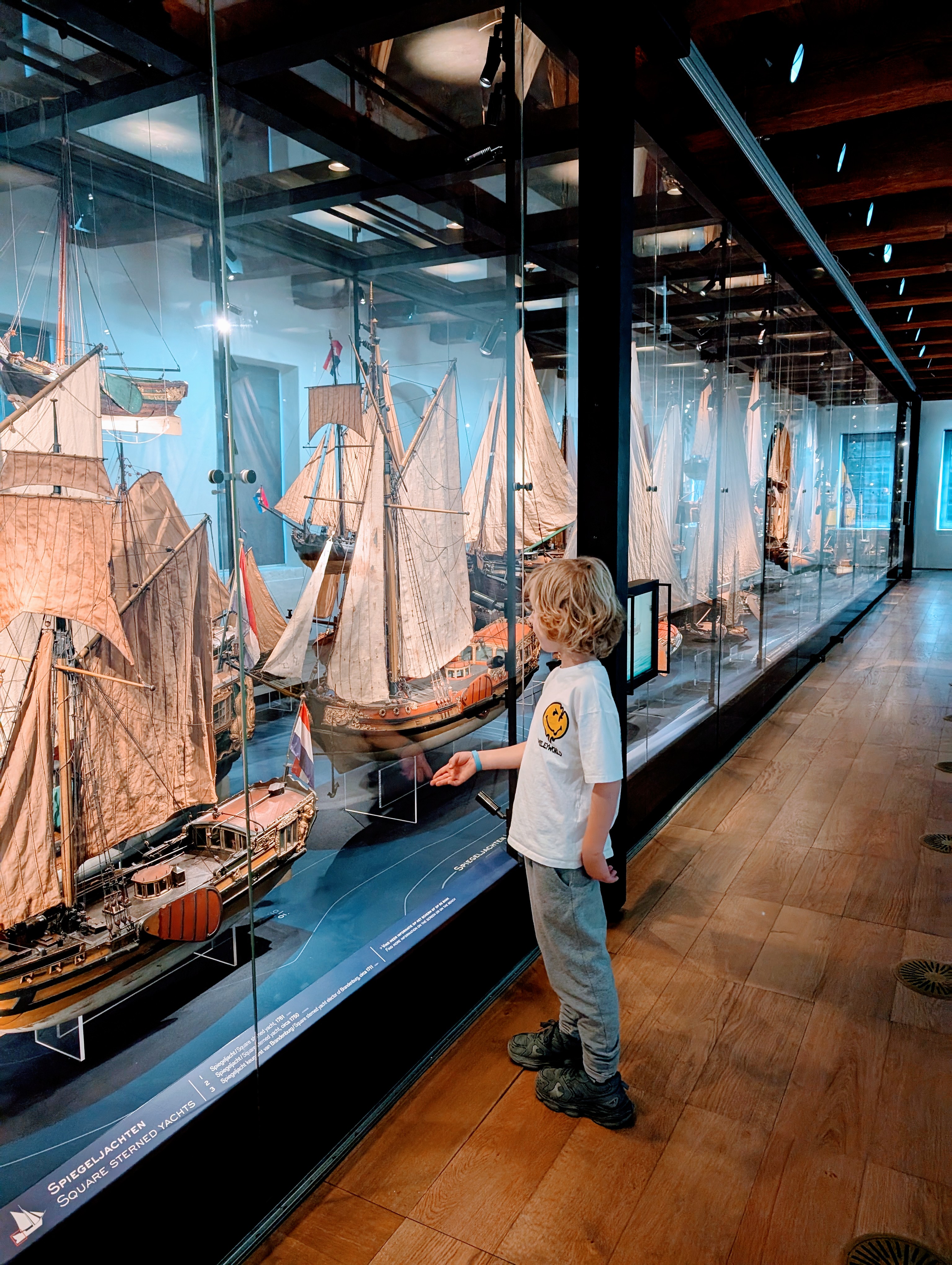 Al in de verte zien we het grote VOC schip 'Amsterdam' liggen terwijl we door de straten van Amsterdam wandelen. "Daar wil ik heen!" zegt Morris. Zo gezegd, zo gedaan. Dankzij onze Museumkaarten is het makkelijk even ergens binnenwippen om te kijken. En zo gingen we 'eventjes' kijken bij het Scheepvaartmuseum Amsterdam. Maar dat eventjes werden een paar uur, want het Scheepvaartmuseum vond hij bijzonder leuk. We bezoeken samen de replica van het historische schip, bekijken modellen van zeilschepen en bezoeken de interactieve afdeling 'Het Verhaal van de Walvis'. Ook is er nog een speciale speelafdeling 'Doris de Duiker' voor de allerkleinste zeevaarders (voor kinderen tot een jaar of 6). Een leuk museum voor volwassenen en kinderen.