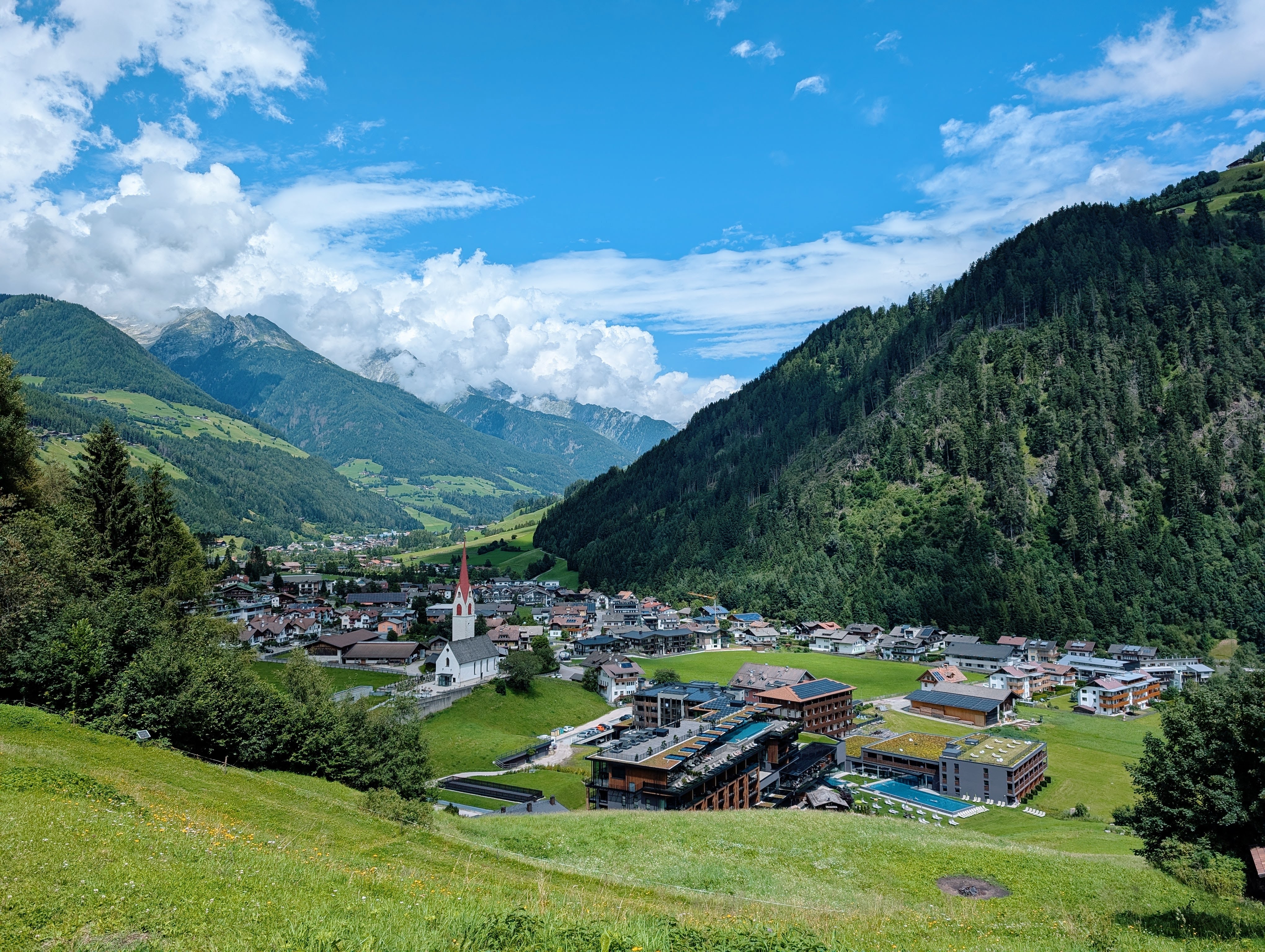 In de ochtend worden we gewekt door de kerkklokken van het schattige kerkje van Luttach. En dat is geen straf hoor. Want het is tijd om de bergen te gaan ontdekken! Maar first things first, naar het giga-uitgebreide ontbijtbuffet. Hier vind je echt alles voor een goede en gezonde start van de dag. Van verse groentesapjes, een vers bereide omelet tot de lekkerste broodjes en zoete taartjes. Hier kan ik wel aan wennen.