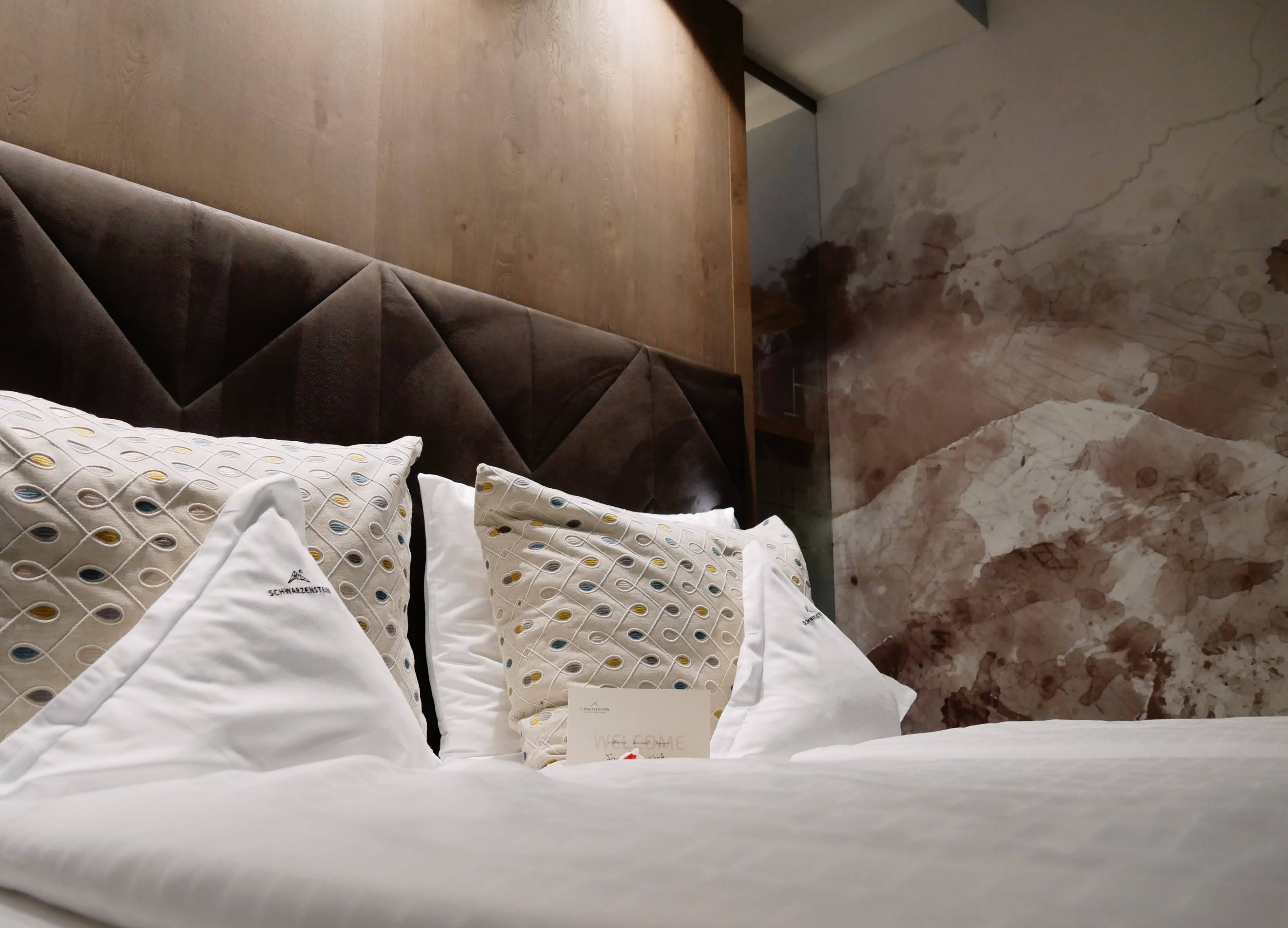 De kamers en suites van Schwarzenstein voelen aan als een warme omhelzing na een dag vol belevenissen. Denk aan hoge plafonds, natuurlijk hout, zachte stoffen en ramen van vloer tot plafond die het berglandschap naar binnen halen. Voor stellen: romantische suites met privé-whirlpool of een Finse sauna op het balkon! Voor gezinnen: ruime familiekamers en verbonden kamers voor extra privacy, maar toch samen zijn. Voor grotere families: de Chalet Suites, met meerdere slaapkamers, aparte woonruimte en veel bergruimte voor kinderwagens, ski’s of wandelspullen. Het hotel denkt aan elk detail: van zachte badjassen in kindermaat
