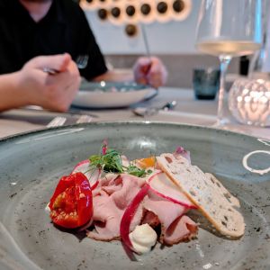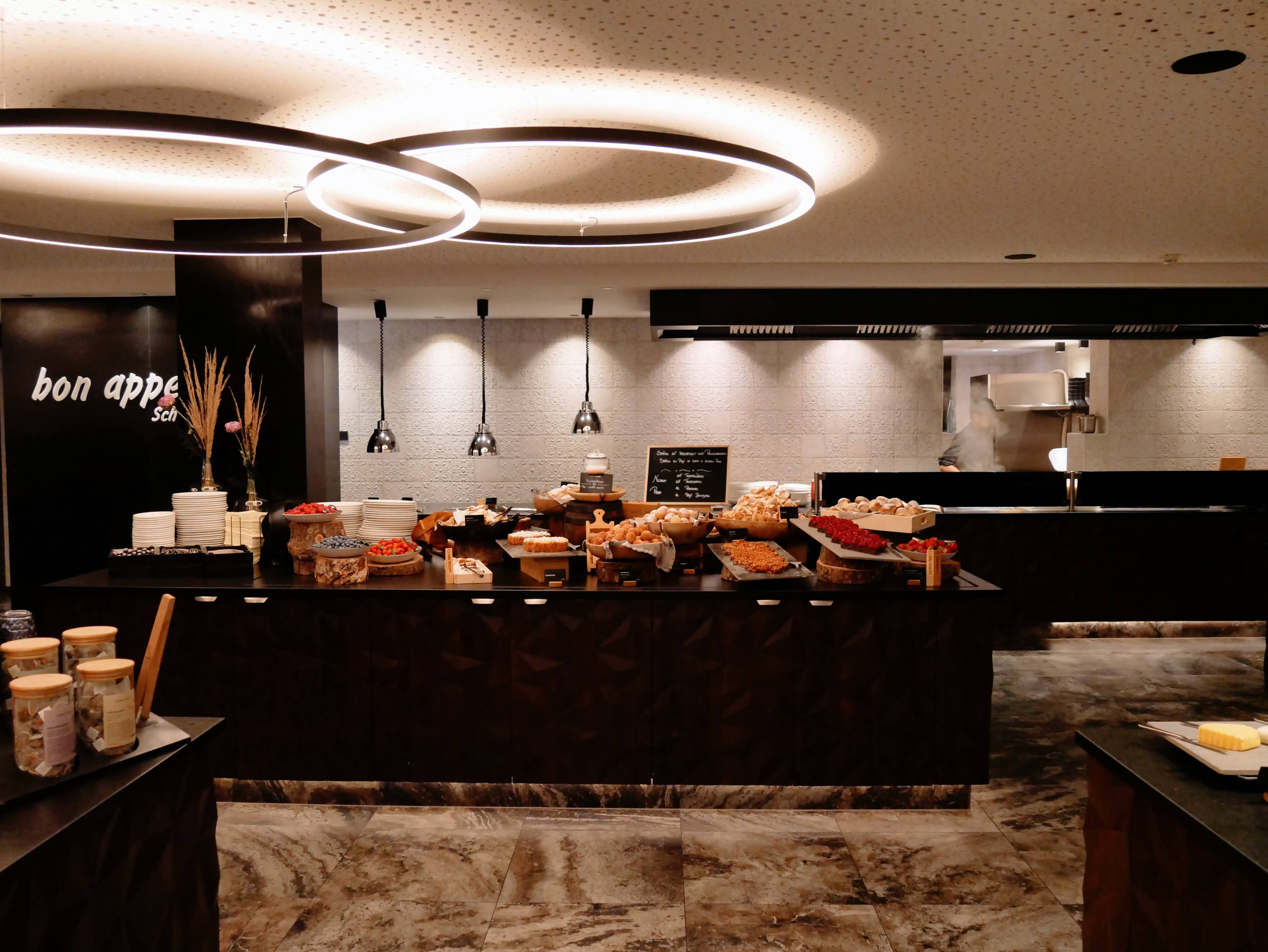 Na een duik in het zwembad, even chillen en spelen in de game room is het alweer tijd voor het avondeten. De hele vakantie hebben we hetzelfde tafeltje en dat is met kinderen echt heel fijn. Zo weet Morris altijd de weg naar ons tafeltje. In de avond is er een a la carte 5-gangen diner en dat is pure verwennerij. We maken in de ochtend een keuze wat we 's avonds graag willen eten. Maar eerst schuiven we aan bij het uitgebreide saladebuffet waarbij we zelf de meest smakelijke salades kunnen samenstellen. Ook is er elke dag life-cooking waar verse pasta's worden bereid. Een plek waar Morris graag even aanschuift met zijn bordje. Om vervolgens te genieten van culinaire gerechten van de kaart. Voor kinderen is meer dan genoeg keuze, niet alleen van het saladebuffet of van de verse pasta's, maar er zijn ook hele toegankelijke gerechten zoals een echte Wiener schnitzel, vissticks en kipfilet etc.