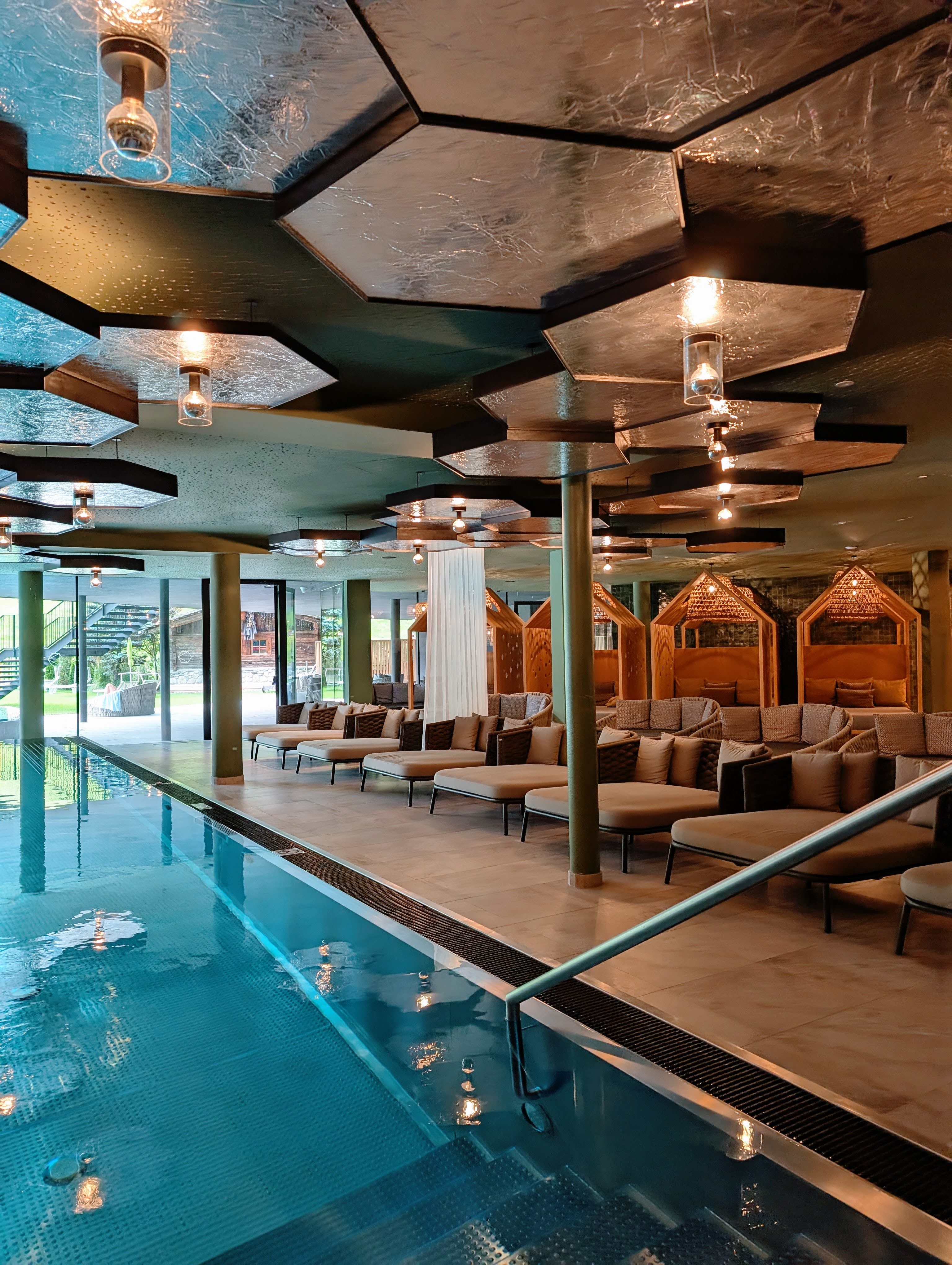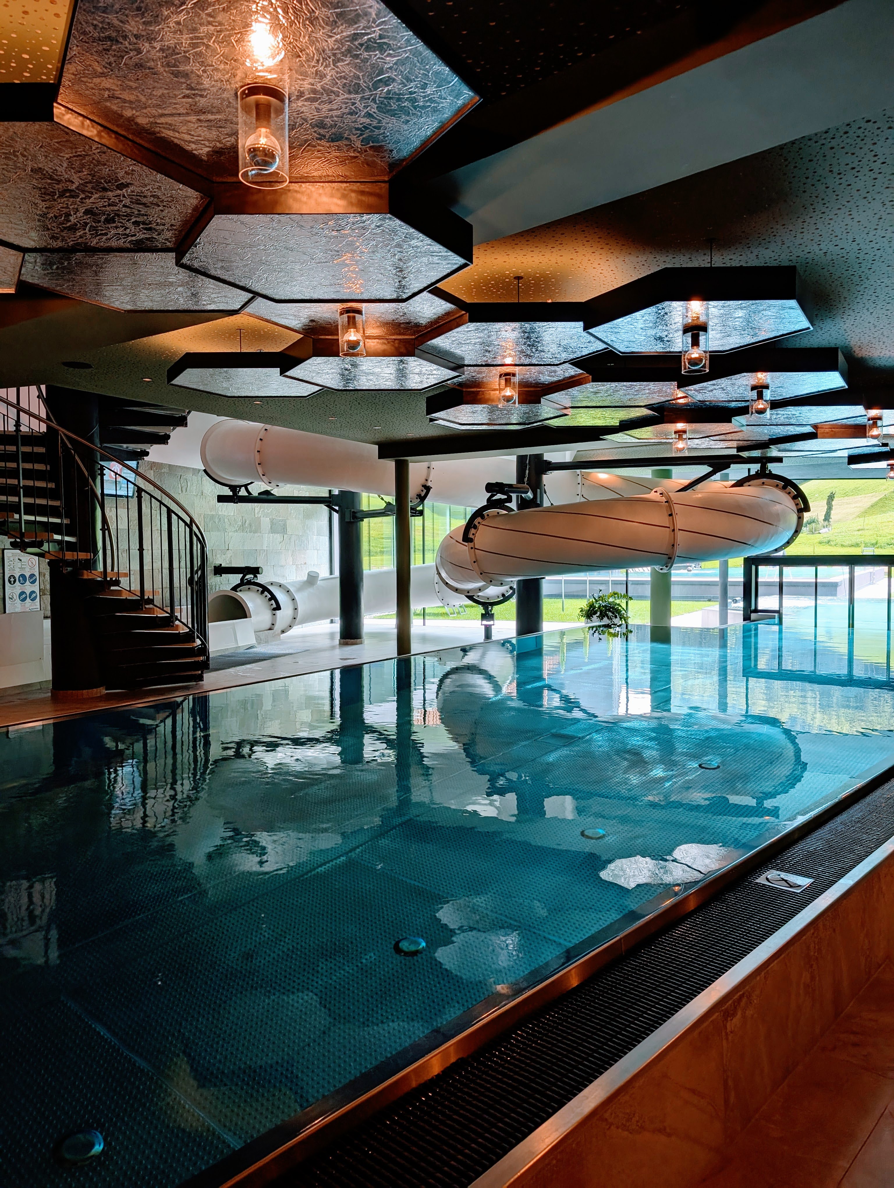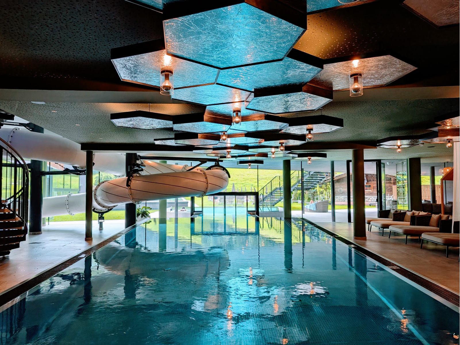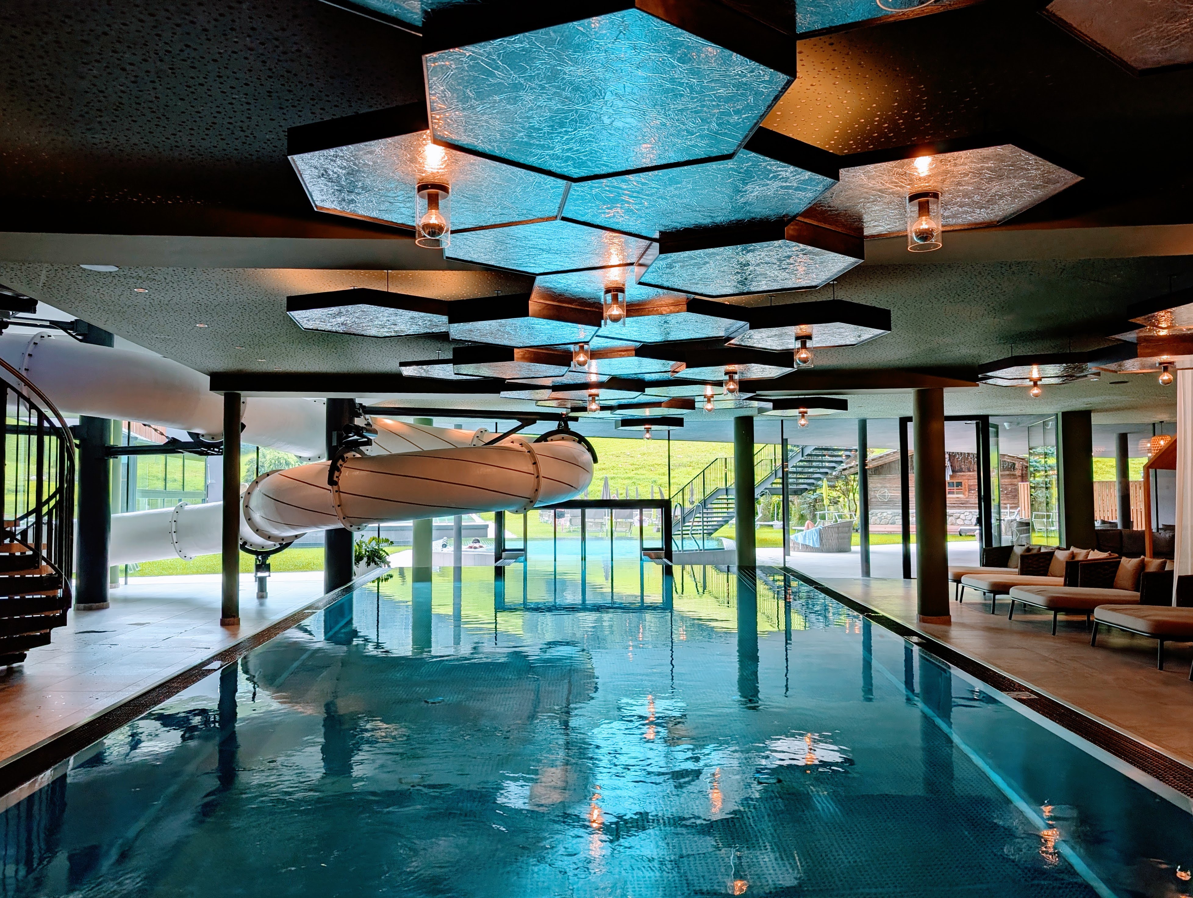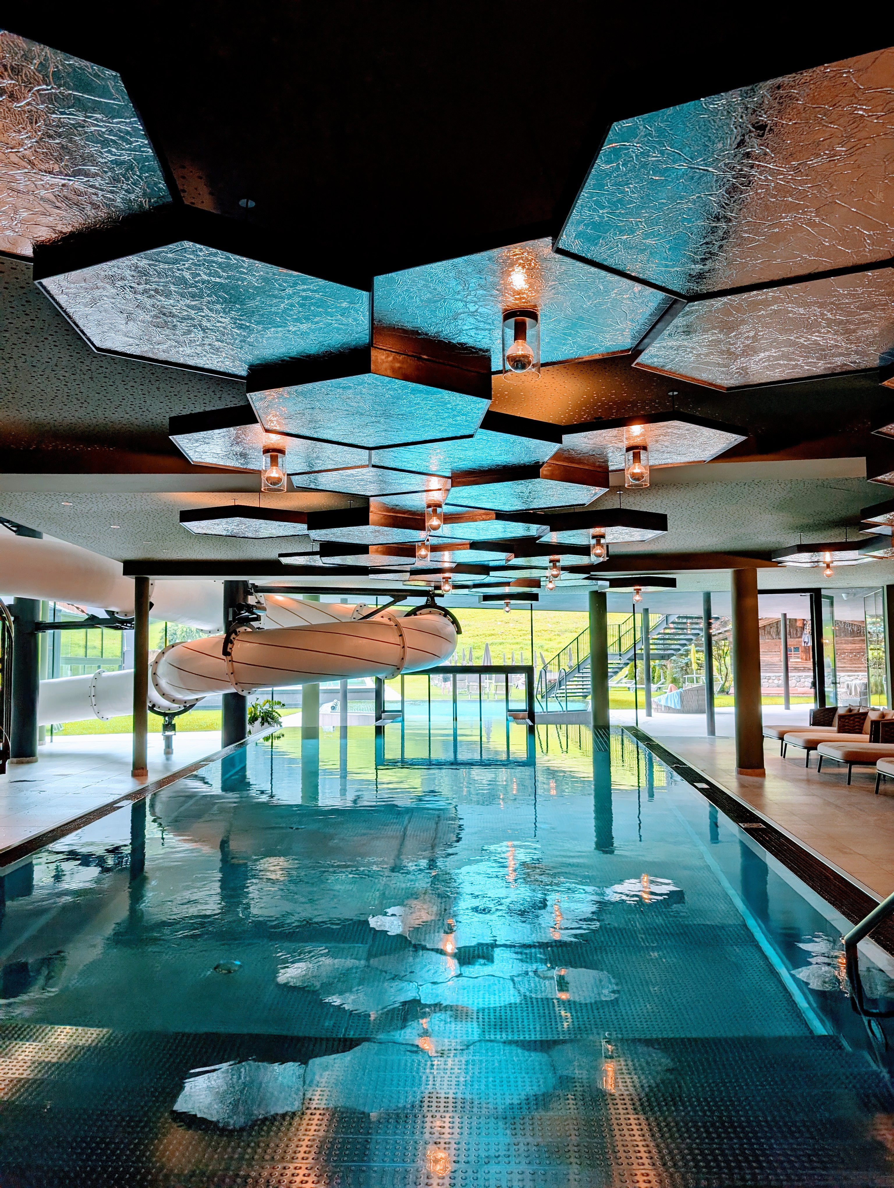 Hoewel je met kinderen vooral in de Family Pool zal zijn, heeft hotel Schwarzenstein nog veel meer zwembaden en whirlpools. Waterliefhebbers komen hier tijd te kort. In de Family Pool bevindt zich zowel binnen als buiten en kijkt uit op de prachtige bergen van het Ahrntal. Ook is er een glijbaan waar je tijd wordt bijgehouden en je tegen elkaar kan 'racen'. Daarnaast is er in de Family Pool een apart kinderbad (25 cm) voor de allerkleinsten. Er zijn meer dan genoeg ligbedden zodat er altijd wel een plekje is waar je even heerlijk kan relaxen. Terwijl de jongens zich uren vermaken in het zwembad en met de glijbaan, lees ik ondertussen een boekje. Fijn!