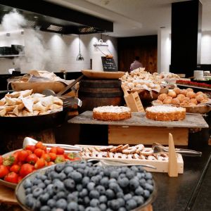 Wanneer we terugkomen van onze avonturen in de bergen (meestal zo halverwege de middag) kunnen we nog net de lunch mee pikken. Ook nu weer een uitgebreide salade en broodjes buffet met ook altijd een warm gerechtje. Ook het water, de sapjes uit de automaat, koffie en thee zijn inbegrepen. En als je de lunch net mist, is er ook nog een 'afternoon buffet' met lekkere zoete en hartige gerechtjes.